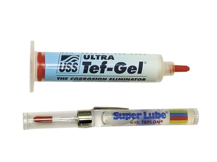Tef-Gel, originally developed and applied in aircraft construction, also commonly used in yacht and shipbuilding and mast making. Tef-Gel grease with a PFTE base is fresh and salt water resistant, lubricates and prevents corrosion between aluminum and stainless steel fasteners, protects the paint layer. Tef-Gel in various quantities.